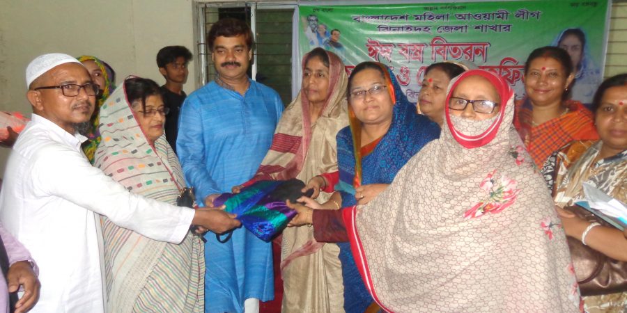 শুত্রবার বিকালে ও শনিবার সকালে খালেদা খানম এমপি নিজ হাতে শিশু একাডেমীতে উপস্থিত হয়ে শতাধীক হতদরিদ্র শিশুদের মাঝে এবং জেলা মহিলা আওয়ামীলীগসহ তৃর্নমূলের বিভিন্ন পর্যায়ের নেতা-কর্মিদের মাঝে ও ছয়টি উপজেলার মহিলা আওয়ামীলীগের মাঝে ঈদের জামাকাপড় বিতরন করেন । এসময় বিভিন্ন উপজেলার সভাপতি ও সাধারন সম্পাদকসহ ঝিনাইদহের পৌর মহিলা আওয়ামীলীগের নেতৃবৃন্দ সাথে ছিলেন।