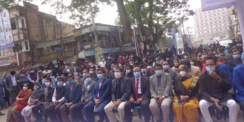 বঙ্গবন্ধুর ভাস্কর্য ভাংচুরের প্রতিবাদে ঝিনাইদহে সরকারি কর্মকর্তা-কর্মচারীদের প্রতিবাদ সমাবেশ